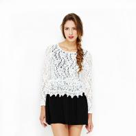 JX假两件套蕾丝拼接连衣裙 白色/黑...