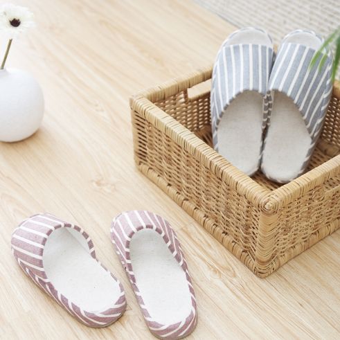 宽条纹棉麻底拖鞋/情侣拖鞋套装