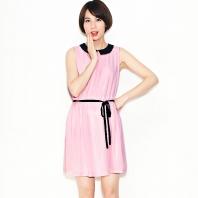 Sweety甜美系带雪纺连衣裙 浅粉色